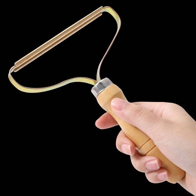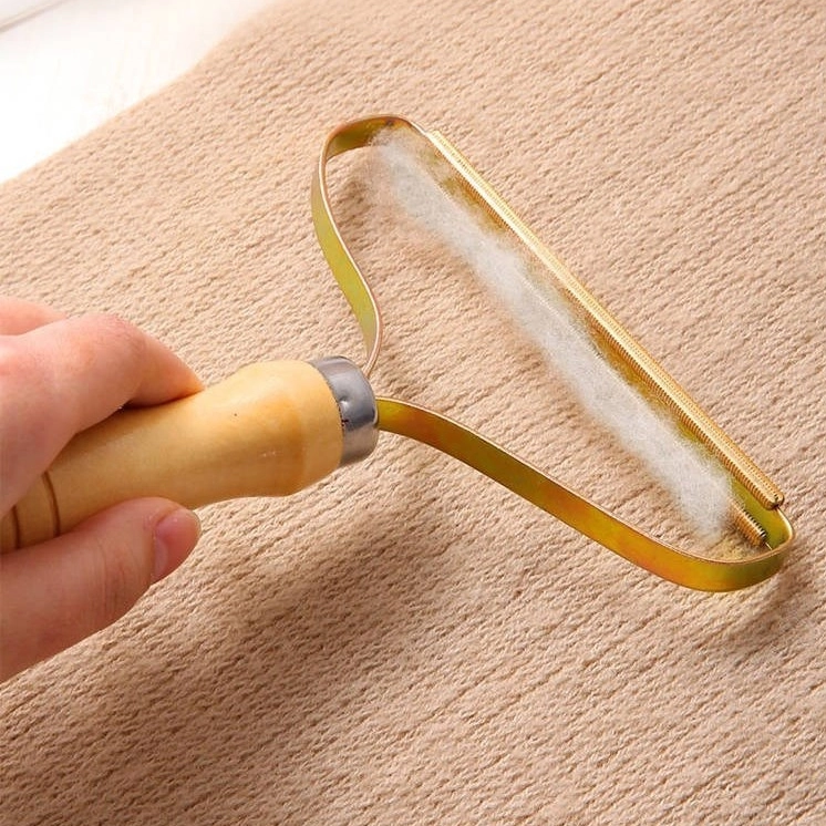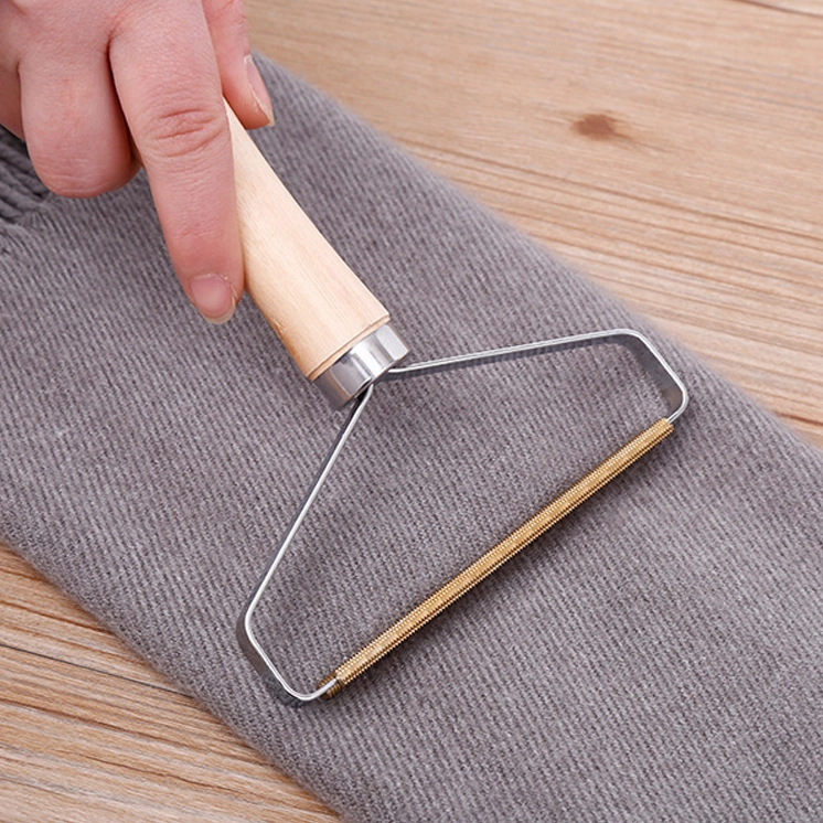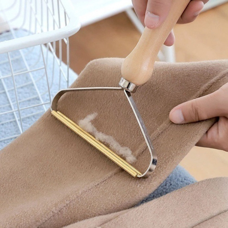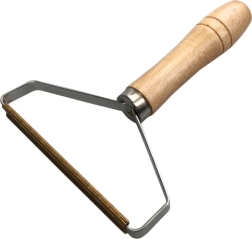 Ръчна четка за премахване на мъхчета от дрехи и тапицерия с дървена дръжка