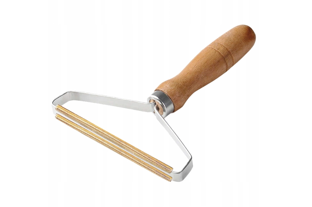 Практична ръчна четка с метална глава и удобна дървена дръжка бързо отстранява мъхчета, косъмчета и замърсявания от пуловери, палта, тапицерия и килими. Без батерии и без кабели – винаги готова за употреба, щадящо възстановява вида на вашите текстили.