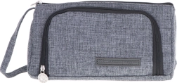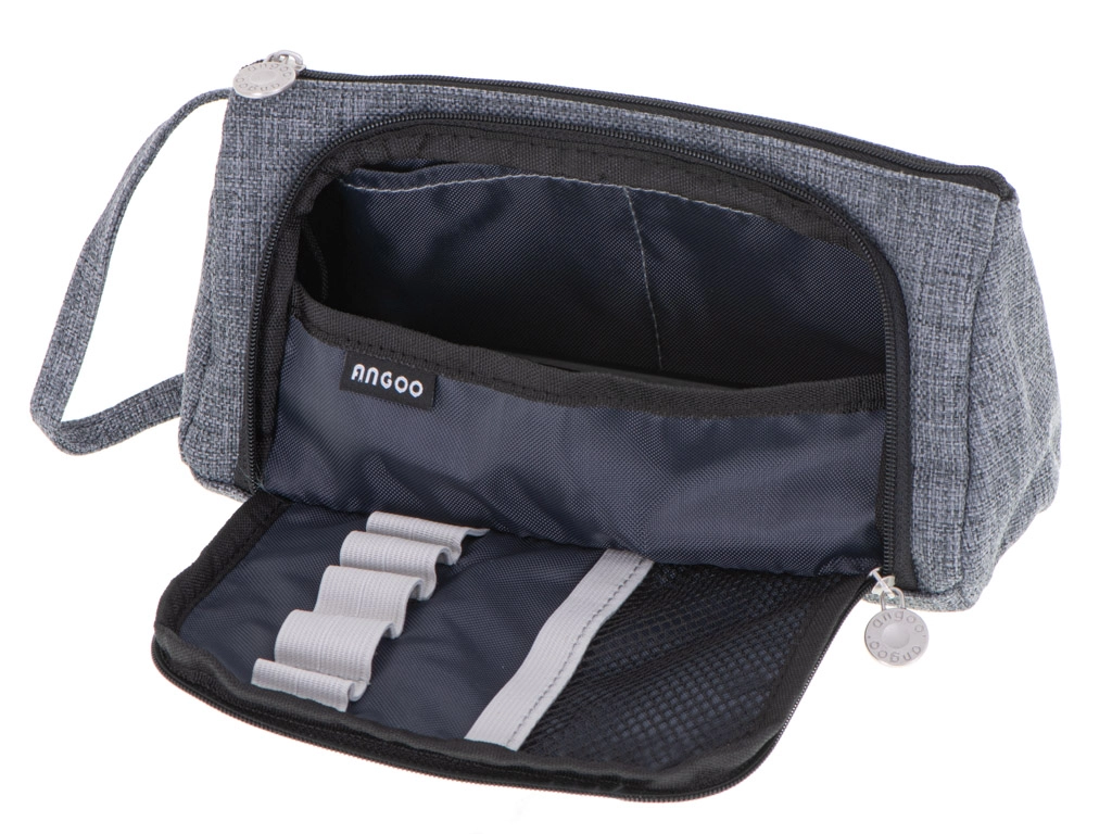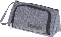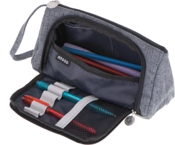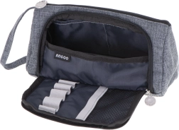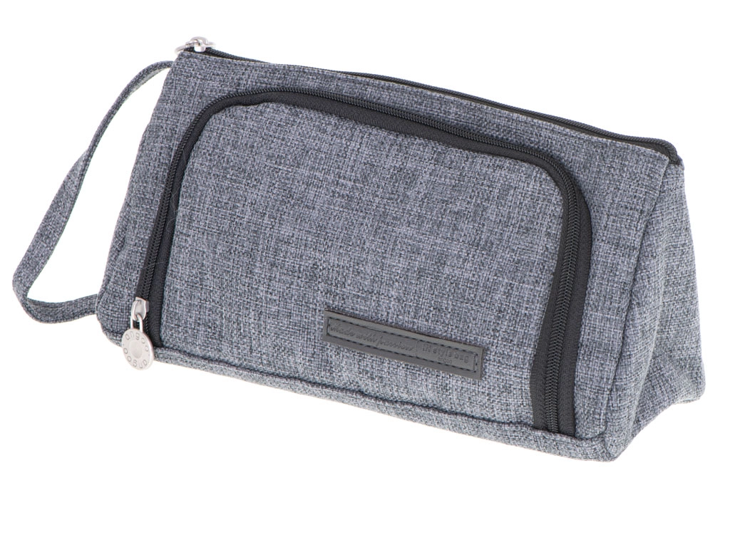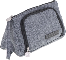 Универсален 3 в 1 несесер в елегантен сив цвят, който служи като ученическо портмоне, козметична чантичка и пътнически органайзер. Предлага две отделения, практични джобчета и еластични ластици за перфектен ред. Благодарение на издръжливия материал, ципа и каишката за китка е идеален за училище, пътуване и офис.