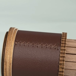 Дървеният тубус с кожена лента и метална табелка придава на модела винтидж визия, която ще краси всеки интериор.