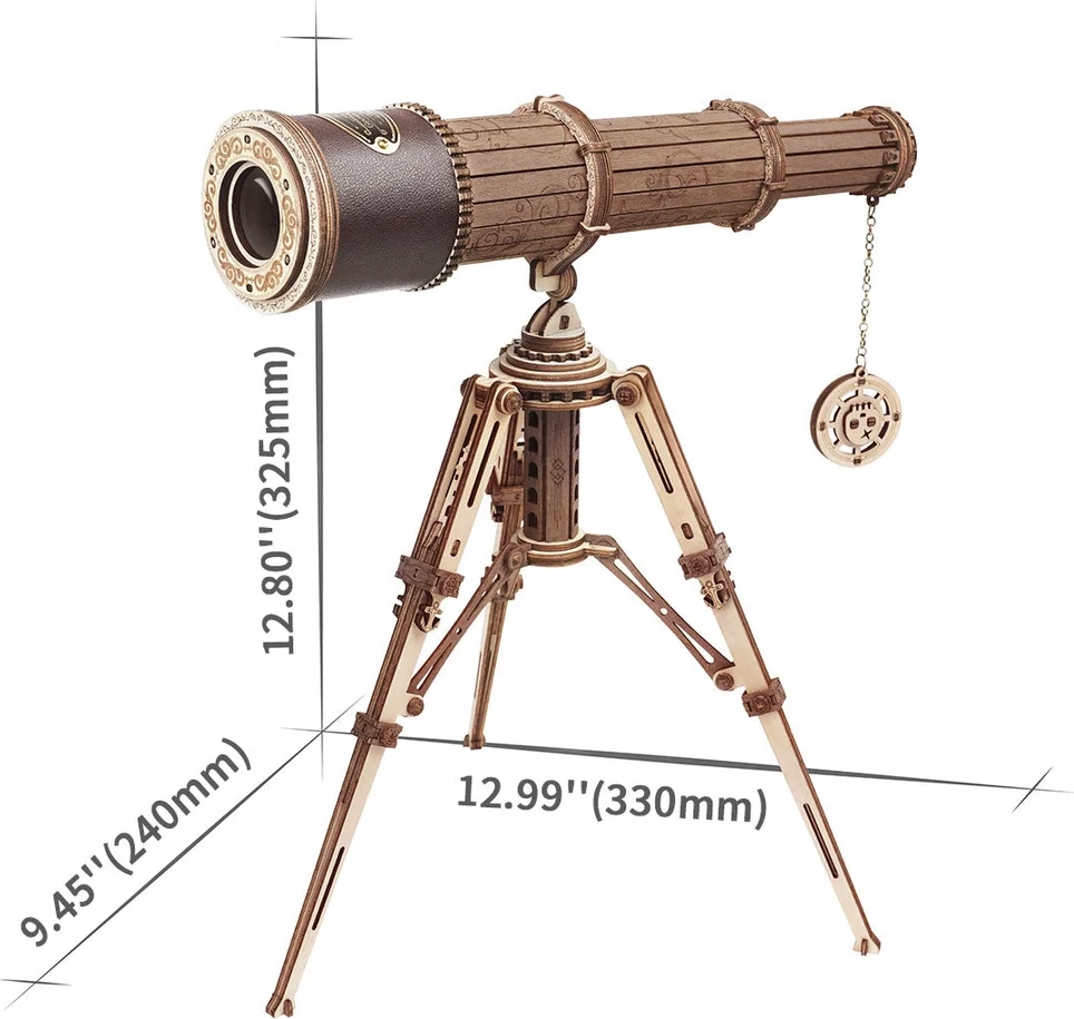 Сглобете собствен дървен модел телескоп от серията ROBOTIME Rokr Curious Discovery, който може да се използва със статив или без него. Този модел е не само красив декоративен елемент, но и подпомага развитието на фината моторика и въображението.