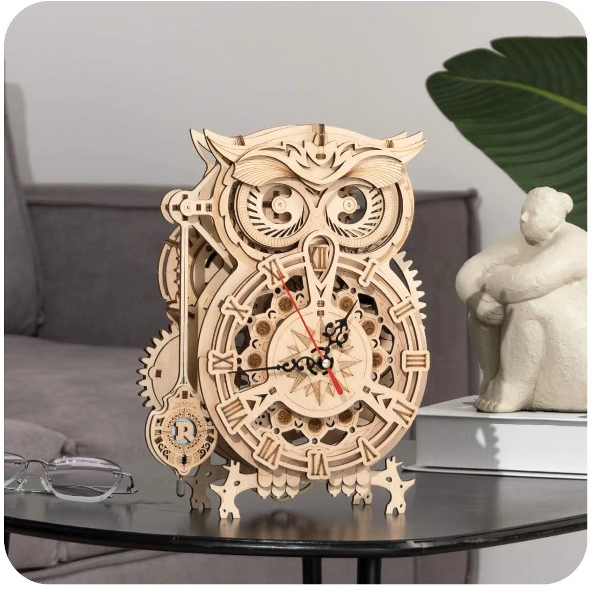 Форма на сова с детайлни механични елементи, които будят възхищение и придават елегантност на интериора.