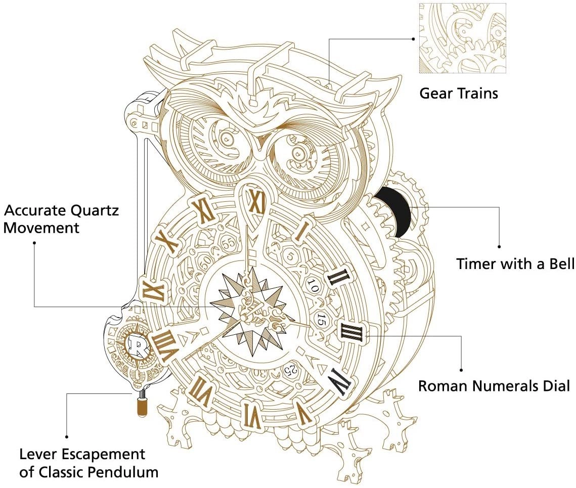 Представяме ви уникален 3D механичен сови часовник, който не само впечатлява със своята неповторима визия, но и с реалната си функционалност като измервател на време. Този продукт е перфектна комбинация от естетика и техническа прецизност, което го прави отличен подарък за всеки любител на занаятите.