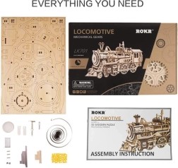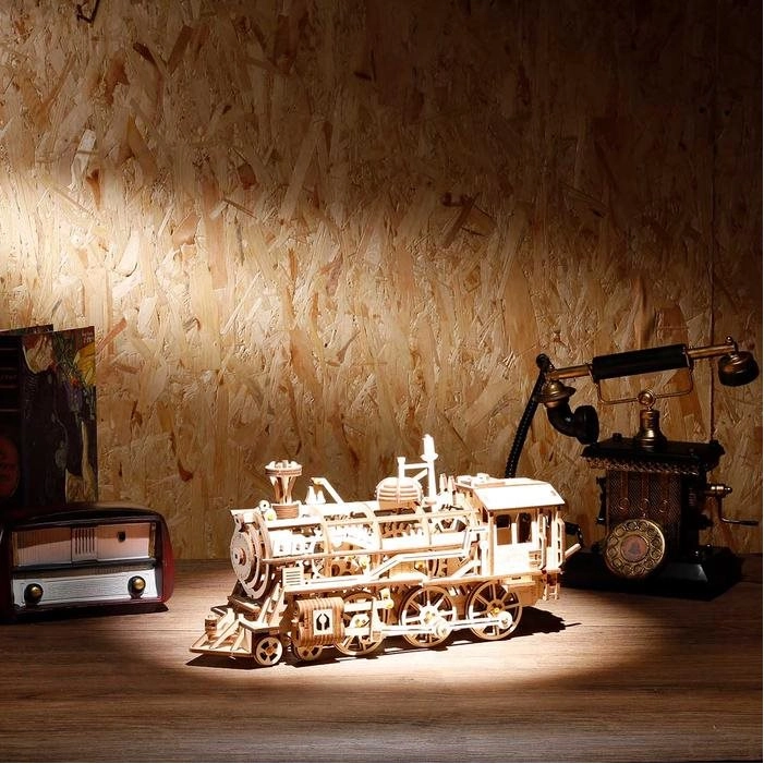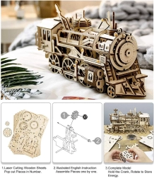 Изживейте вълнението от сглобяването с този уникален 3D модел на дървена локомотива. С пружинно задвижване влакът наистина се движи, а парната свирка добавя автентичност. Моделът е проектиран за лесен монтаж без лепило, с прецизно изрязани части от шперплат.