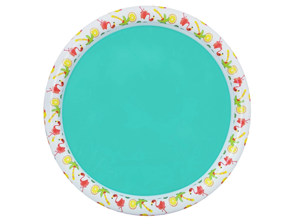 Комплектът включва надуваем басейн, пояс за плуване и плажна топка – всичко в игрив тропически дизайн. Децата имат веднага под ръка всичко необходимо за безопасни водни забавления.