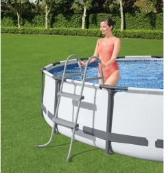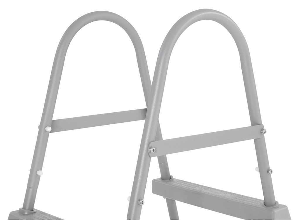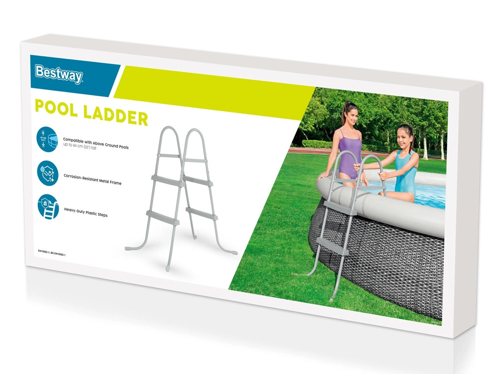 Сигурна и стабилна метална стълба за басейн Bestway е идеална за надземни басейни с височина до 84 см. Разполага с две противоплъзгащи се стъпала, които осигуряват лесен и удобен достъп до басейна.