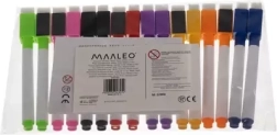 Практичен комплект сухоизтриваеми маркери с магнит и мини гумичка в капачката за бързи корекции на дъската. В опаковката има 16 броя в 8 ярки цвята (по 2 от всеки). Идеални за училище, офис и домакинство. Маркерите пишат гладко, лесно се изтриват и се закрепват върху магнитни дъски. 8 цвята, магнит на капачката, вградена гумичка, универсално приложение.