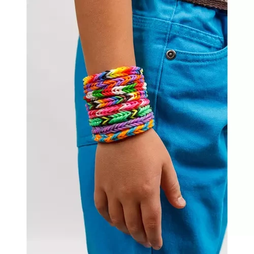 Комплектът съдържа 1500 ластика в 23 прекрасни цвята, които стимулират въображението и креативността.