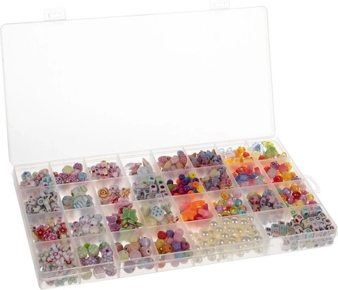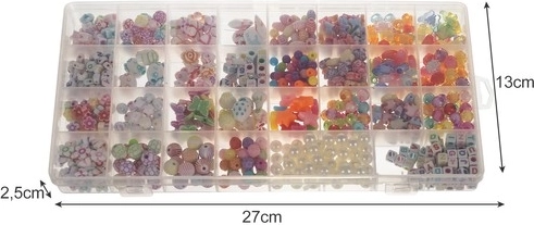 - XXL комплект в органайзер - 900 цветни компонента позволяват изработката на различни видове бижута. В комплекта са включени още обръчи, връв, закопчалки и съединители.