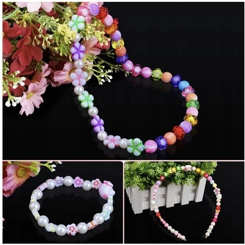 Комплект за изработка на бижута за малки творци. Съдържа 900 цветни мъниста с различни форми и цветове, които позволяват изработка на гривни, колиета и други бижута.