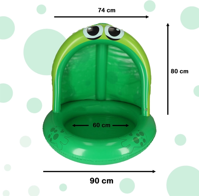 Този зелен надуваем басейн във форма на жаба е идеалното място за забавление на вашите деца в горещите летни дни. Благодарение на страхотния дизайн и защитния навес предлага безопасна и весела среда за вашите малчугани.