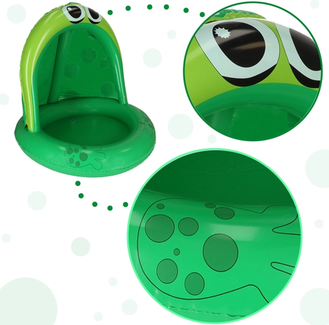 Живият зелен дизайн с големи жабешки очи и надуваеми крачета придава автентична визия. Освен това умният навес предпазва децата от вредното UV-излъчване, което гарантира дълги часове безопасни водни игри.