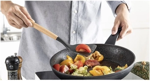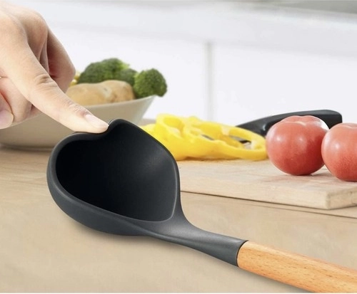 Силиконовата конструкция е гъвкава, което означава, че инструментите няма да надраскат вашите тигани и тенджери и остават нежни към техните повърхности.