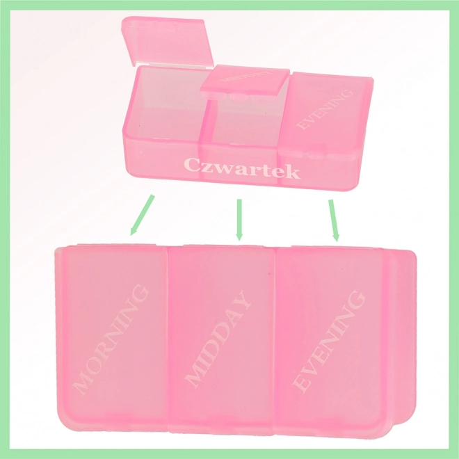 Този практичен седмичен органайзер помага систематично да подредите таблетките за цяла седмица. Благодарение на това никога няма да забравите кои лекарства да приемете и кога.