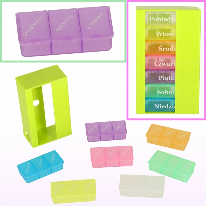 Седмичният органайзер за таблетки е идеалният помощник за всеки, който трябва да следи приема на своите лекарства. Органайзерът, разделен на 7 цветни чекмеджета, улеснява проследяването кои таблетки да се приемат в кой ден.