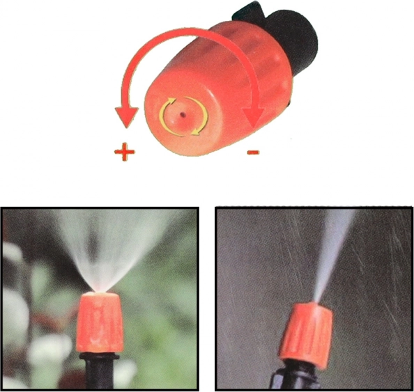 - Регулируеми дюзи за фина мъгла или по-силен спрей