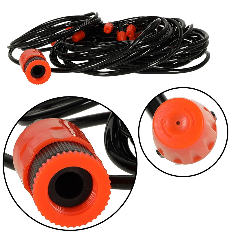 Практичният комплект за мъглуване превръща вашата градина, тераса или оранжерия в приятно прохладно място. Фината водна мъгла подобрява климата в горещите дни, намалява прегряването и повишава комфорта за отдих и детски игри. Системата едновременно служи като икономично напояване – разпределя равномерно водата към растенията без разхищение.