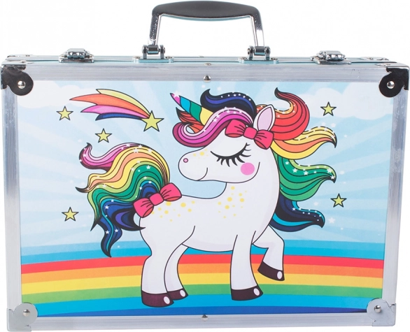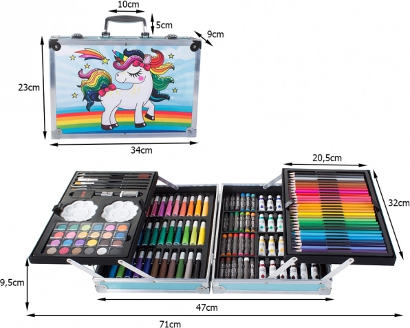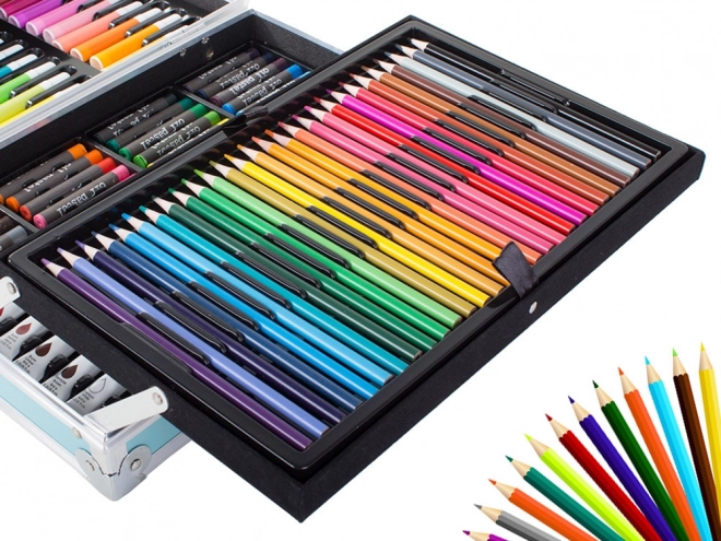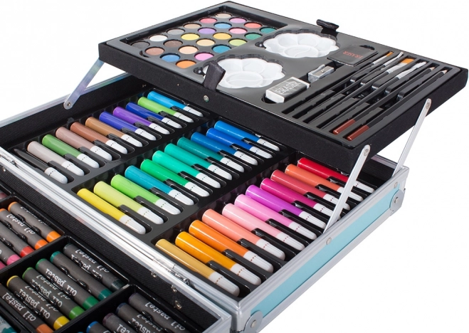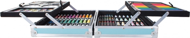 Творческият комплект съдържа различни пособия, които са прегледно подредени в специални отделения. Благодарение на стилния дизайн на куфарчето можете винаги да имате своите художествени материали под ръка.