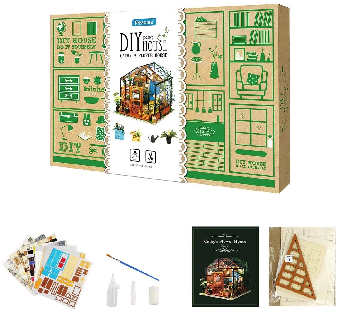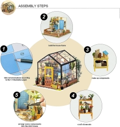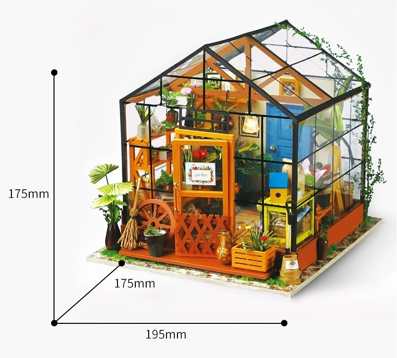 Миниатюрната оранжерия от ROBOTIME е детайлен арт комплект за сглобяване, с който ще се насладите на приятни моменти на творчество и ще създадете уютна декорация с LED осветление. Комплектът съдържа всичко необходимо за сглобяване – лепило, бои, четка и дребни инструменти. Моделът се отличава с богати детайли, реалистичен вид и релаксиращо изживяване по време на изработка.