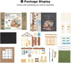 Открийте магията на миниатюрите с модела Robotime Mini Оранжерия. В кутията ще намерите предварително изрязани елементи от шперплат, хартиени принтове, текстилни и метални части, които след боядисване и сглобяване образуват впечатляваща оранжерия, пълна с растения и градински аксесоари. LED осветлението придава на завършения модел топла и уютна атмосфера.