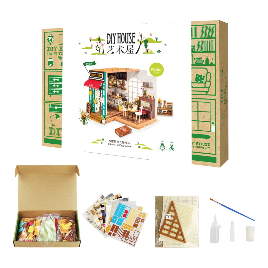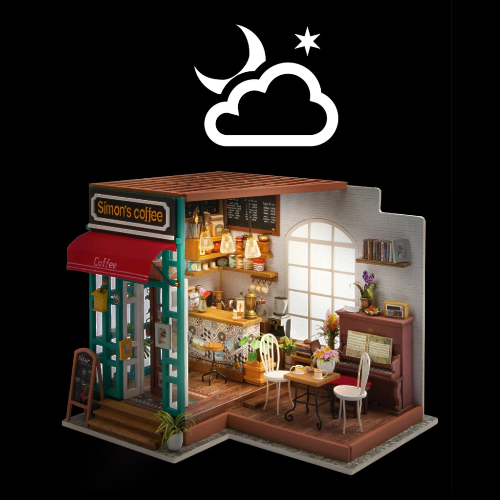 Открийте света на творческите комплекти, където всяко парче се създава на ръка. Миниатюрното кафене се отличава с богато оборудване, автентични текстури и LED светлина, която създава приятна атмосфера. Идеален като подарък за креативни личности и като стилна домашна декорация.