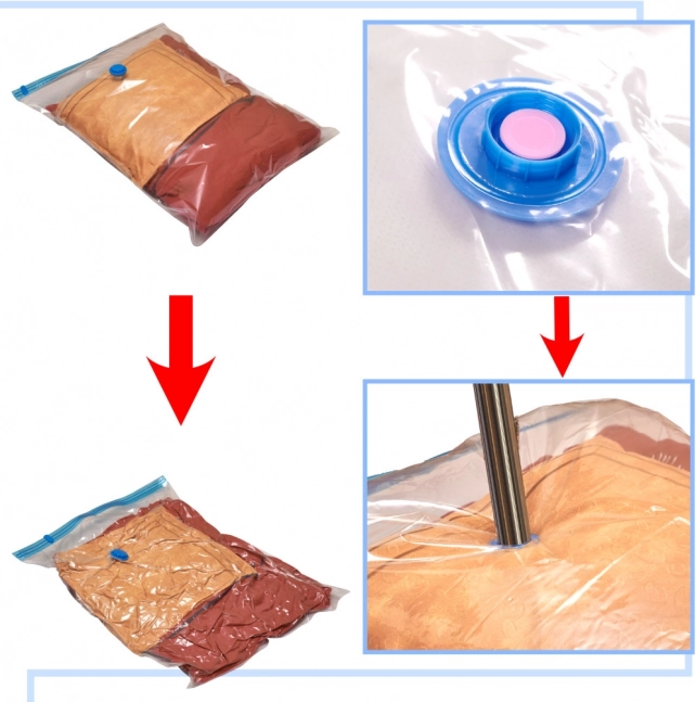 Вакуумните торби за съхранение са отличен начин да спестите място в гардероба. Достатъчно е да приберете дрехите, да затворите торбата и да изсмучете въздуха с прахосмукачка. Вашите вещи ще бъдат компресирани и надеждно защитени от външни влияния.