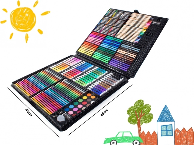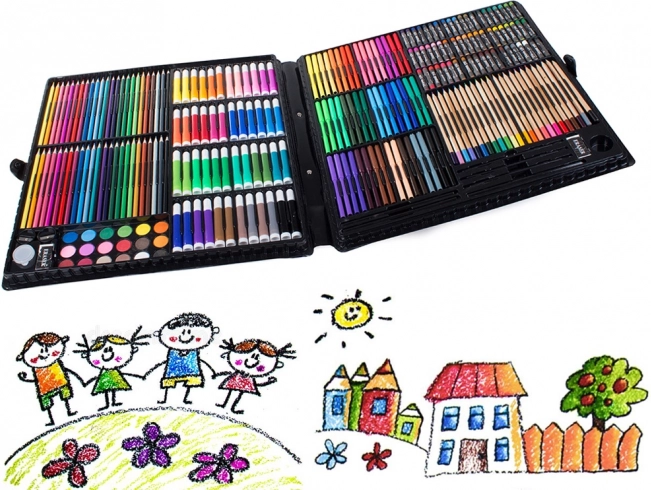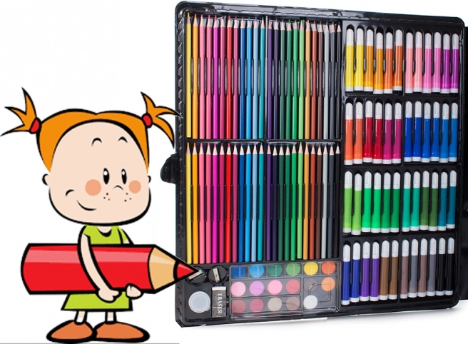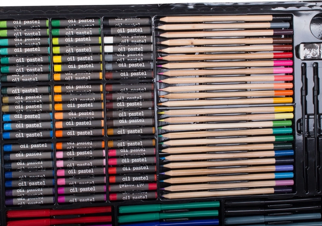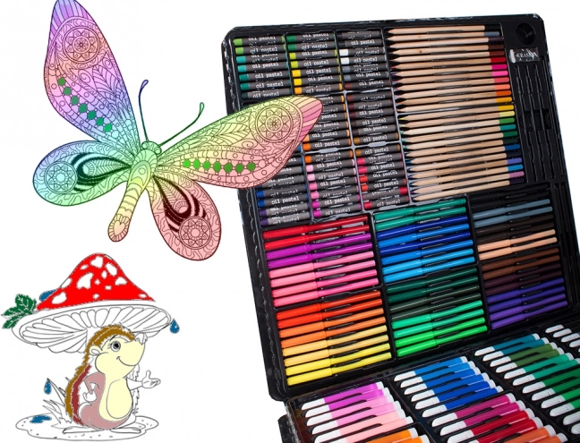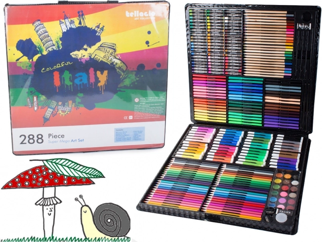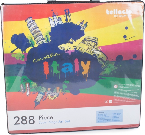 Включва всичко необходимо за развитие на креативността: цветни моливи, флумастери, маслени пастели и акварелни бои – общо 288 елемента.