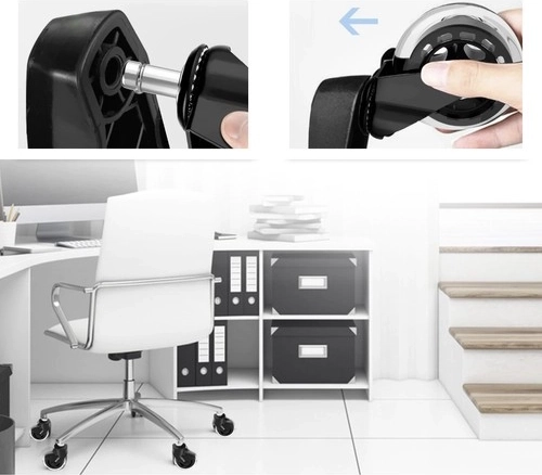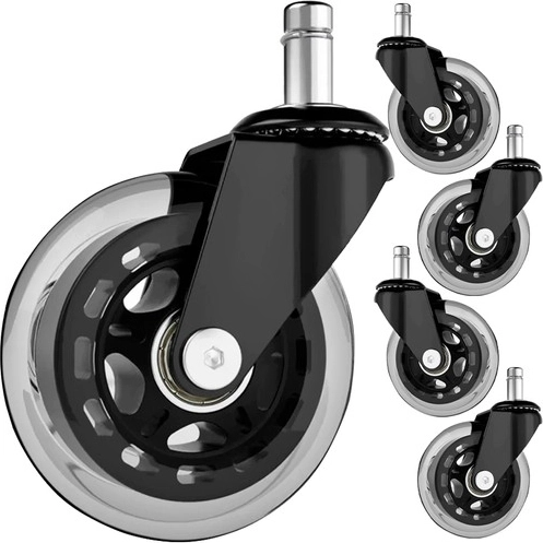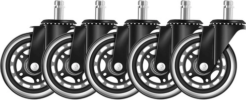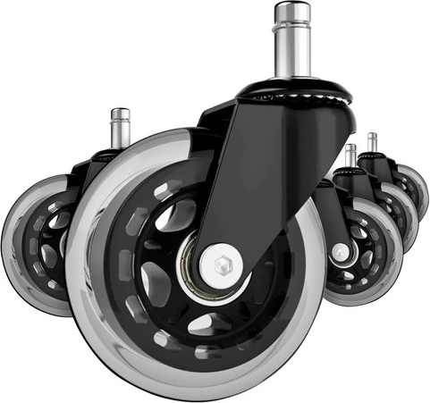 Представяме ви комплект от пет офис колелца, които ще превърнат настоящия ви офис или геймърски стол в елегантно и функционално решение. Благодарение на каучуковата конструкция тези колелца осигуряват тихо движение и защитават всички видове подови настилки.
