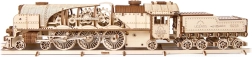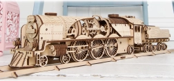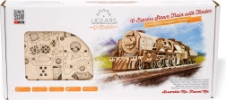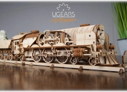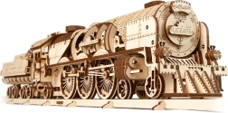 UGEARS V-Express е изключителен дървен модел за взискателни почитатели, който съчетава магията на класическата железница с умна механика. Откритата „обшивка“ на локомотива позволява да наблюдавате работата на предавките, зъбните колела и коляновия механизъм в действие. Благодарение на навиващия се мотор моделът наистина потегля и предлага реалистично изживяване при движение, включително свободен ход и задна предавка.