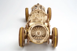 Влезте в ерата на раждането на автомобилния спорт с прецизния модел UGEARS U9 Grand Prix. Комплектът от висококачествен шперплат предлага автентично изживяване при сглобяване и функция: управление, задна скорост, неутрална позиция и реалистично движещи се елементи на V8 двигателя. Моделът е проектиран така, че след навиване на пружинния механизъм да се движи самостоятелно и да зарадва всеки любител на техниката.
