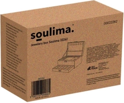 Открийте добре обмислената организация на бижутата в една компактна кутия. Кутийката SOULIMA предлага кукички за верижки, места за пръстени, джоб с ластик и просторно чекмедже. Благодарение на заключването с ключ ценностите ви са винаги в безопасност и под ръка. Вечният дизайн със сребърни детайли перфектно пасва както на тоалетка, така и в гардеробна.
