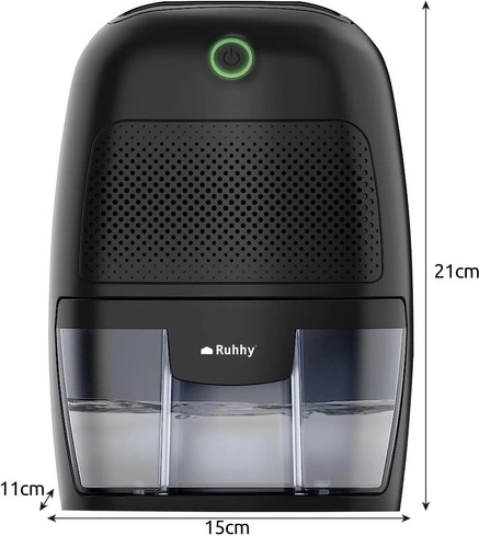 Обезвлажнителят за въздух Ruhhy е идеалното решение за помещения с висока влажност, където неблагоприятните условия могат да застрашат здравето. Този уред отстранява влагата от средата и я кондензира в своя воден резервоар с капацитет 600 ml, което осигурява 48 часа непрекъсната работа без нужда от изпразване. Той е и енергийно ефективен с мощност 22,5 W.