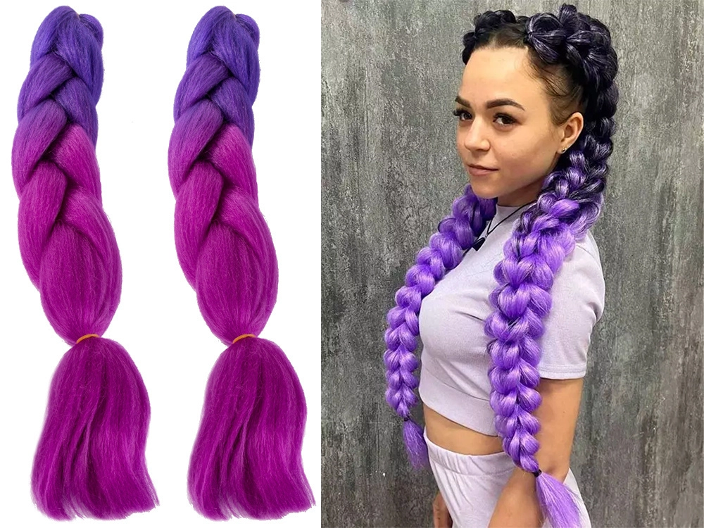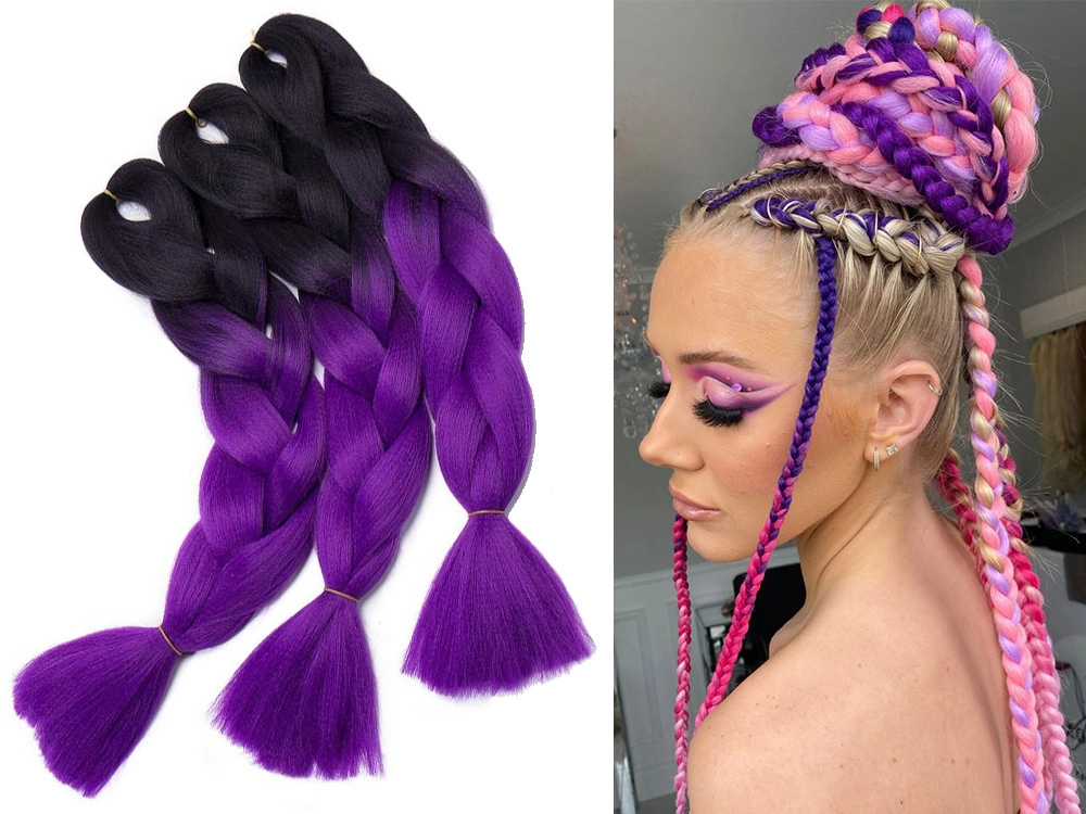 Този сияен виолетов омбре стил е идеален за оригинални прически, които можете да променяте според повода. Създайте ослепителна визия за фестивал, карнавал или друго събитие с помощта на тези универсални плитки.