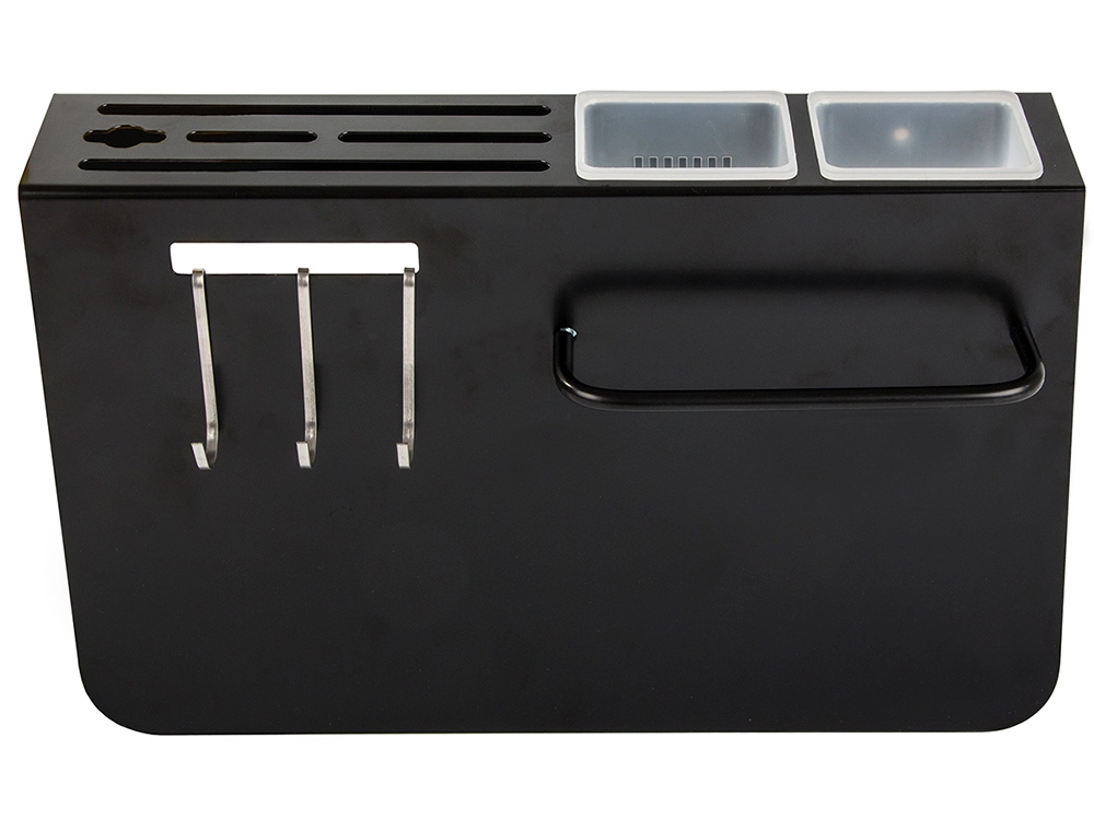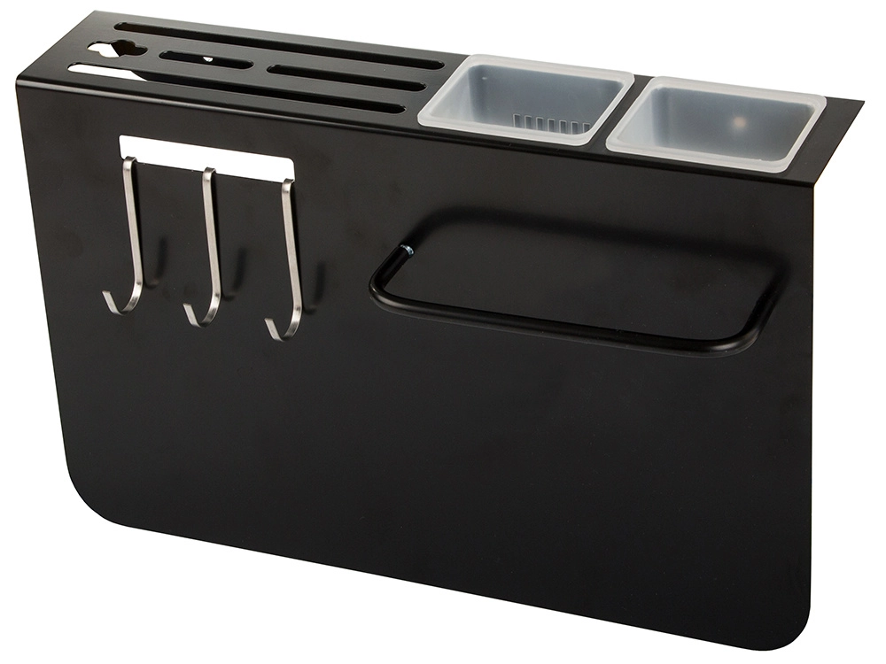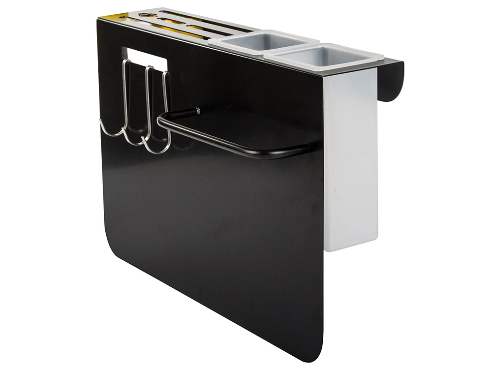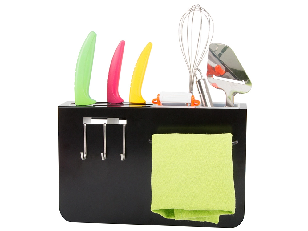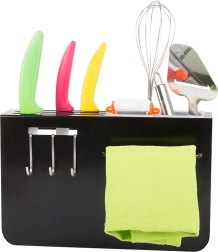 Три куки и два контейнера за лесно подреждане на ножове и кухненски инструменти.
