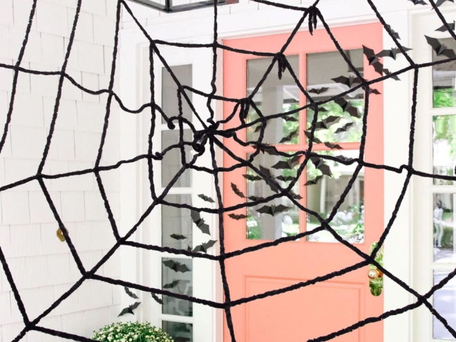 Голямата черна паяжина веднага превръща верандата или входната врата в страховита сцена. Идеална за посрещане на лакомници и декориране на дома.