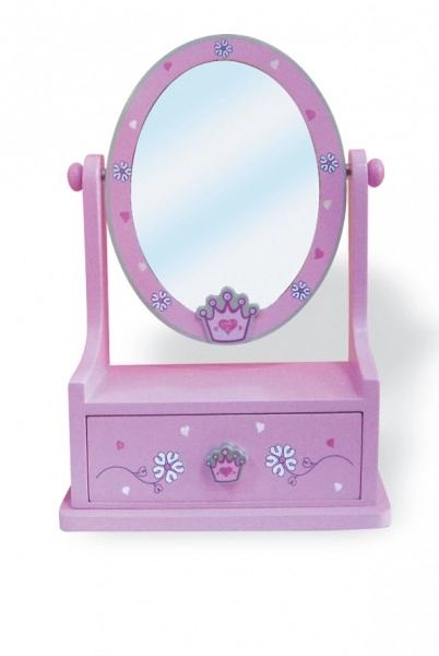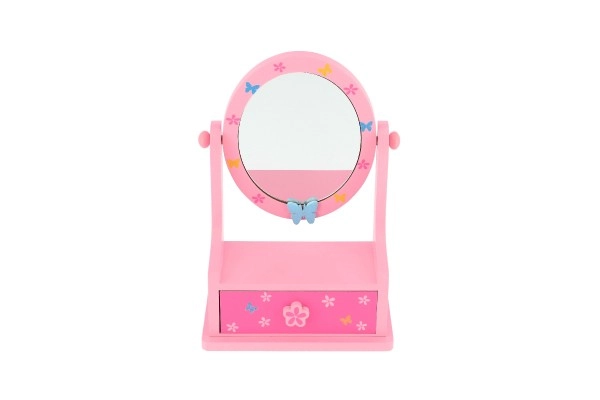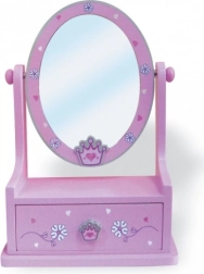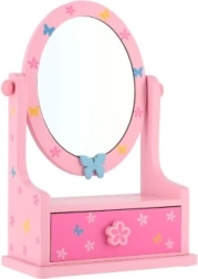 Тази дървена кутия за бижута в пастелни цветове с регулируемо огледало е перфектен избор за малки дами, които искат техните бижута и ценности да са подредени и добре съхранени.