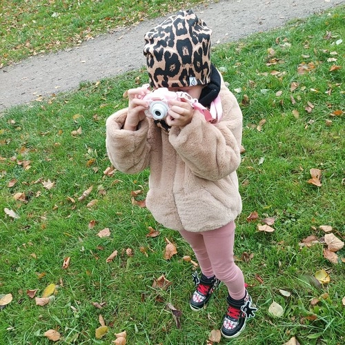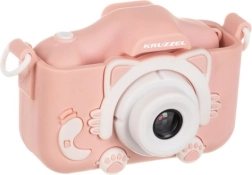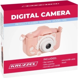 Очарователният детски фотоапарат KRUZZEL с 2'' дисплей предлага снимки и видео в Full HD, предна селфи камера, 5 вградени игри и много забавни рамки и филтри. В комплекта има 32GB карта, защитен силиконов капак с котешки елементи, връзка за носене и USB кабел – идеалният първи фотоапарат за малки фотографи от 3 години.