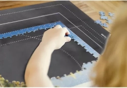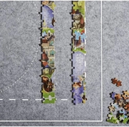 Насладете се на безкрайни часове подреждане на пъзели с тази удобна и практична постелка. Тя е изработена от полиестер, което я прави лесна за сгъване и идеална за организация. Включена е PVC тръба за лесно навиване и три ленти, които държат пъзела на място.