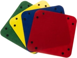 Постелката съдържа отпечатани полета за шест различни размера пъзели, което улеснява подреждането на всякакви размери елементи.