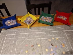 Комплектът включва четири джобчета за сортиране на елементите на пъзела, позволяващи безопасно съхранение без риск от загуба.