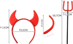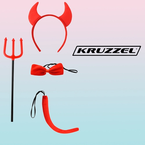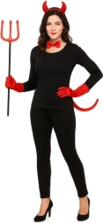 Рога, папионка, опашка и тризъбец – всичко в съчетан червен цвят за мигновена дяволска визия без търсене на допълнителни аксесоари.