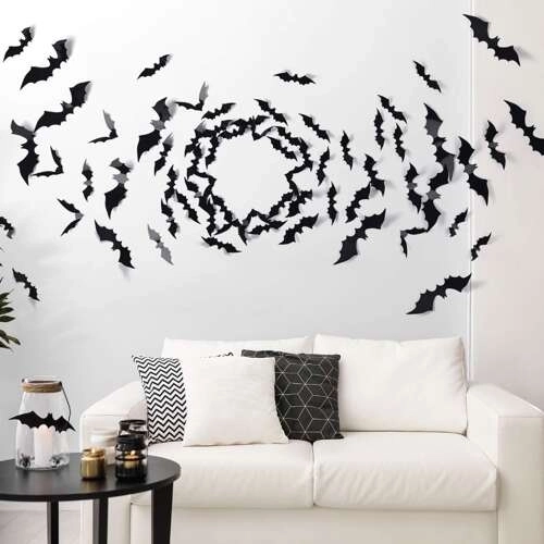 Комплектът съдържа 3 прилепа с размах на крилата 47, 37 и 31 cm, които придават на интериора силен „уау“ ефект. Лъскавото черно покритие и 3D формоването позволяват да създадете драматични инсталации на стена, прозорец или врати.