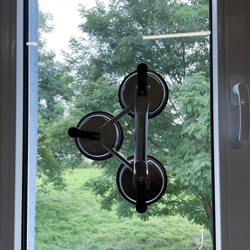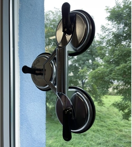 Трите големи вендузи разпределят натоварването и позволяват манипулиране с тежки и крехки панели без риск от повреда.