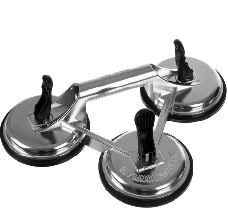 Тази здрава алуминиева тройна вендуза BIGSTREN е идеален избор за монтажници, стъклари и домашни майстори. Трите големи гумени вендузи 120 mm с механичен лостов притискателен механизъм осигуряват силно и стабилно захващане върху гладки и непорьозни повърхности като стъкло, метал, глазура или лакирано дърво.