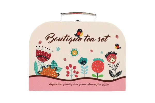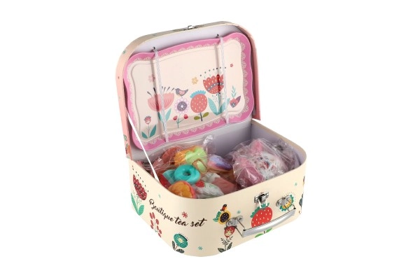 Всяко малко момиче вече може да сервира чай и кафе на своите приятелки и плюшени играчки с този прелестен чаен сервиз. Комплектът е подреден в практично куфарче, което го прави идеален за игра по време на пътуване.