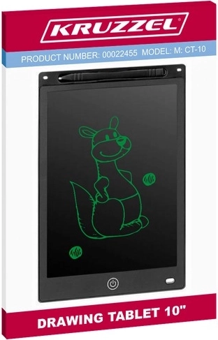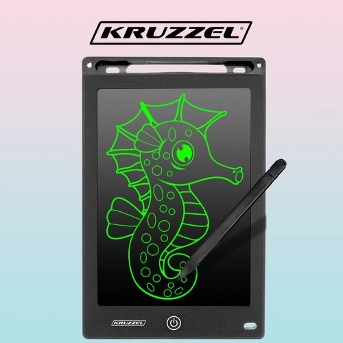 Kruzzel XL таблет за рисуване е перфектен инструмент за креативно изразяване и полезен помощник за бележки или рисуване. Екранът на таблета създава изображение чрез натиск, което го прави идеален за деца благодарение на неговата нечупливост и устойчивост на удари. Без нужда от хартия той щади околната среда, тъй като може да се използва многократно.
