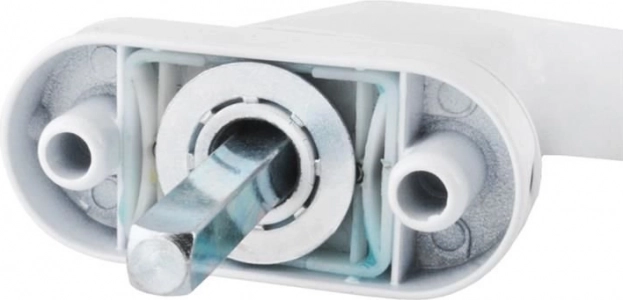Дръжката е изработена от здравa комбинация от метал и пластмаса, има изчистен бял вид и удобно управление. Монтажът е бърз и лесен – в комплекта ще намерите всичко необходимо, включително винтове и 2 ключа.