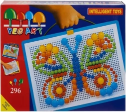 Тази креативна мозайка с гъбки разкрива пред децата пъстър свят на съзидание. От цветните колчета лесно се раждат пеперуди, цветя или собствени оригинални шарки. Комплектът в практично куфарче позволява лесно пренасяне и съхранение на всички части, така че нищо да не се загуби и забавлението да започне по всяко време и навсякъде.