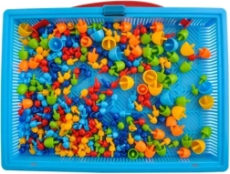Голям запас от елементи за безкрайни варианти на картинки и шарки. Идеално за развиване на въображението, сортиране по цветове и усвояване на модели.