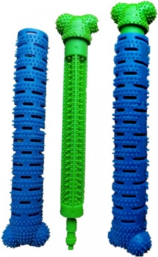 Тази умна дентална играчка съчетава забавление и грижа за устната кухина на кучето. Текстурираният повърхностен слой със силиконови издатини ефективно отстранява остатъци от храна и плака при дъвчене, като едновременно нежно масажира венците. Вътрешните каналчета позволяват нанасяне на кучешка зъбна паста, която се освобождава постепенно по време на игра.
